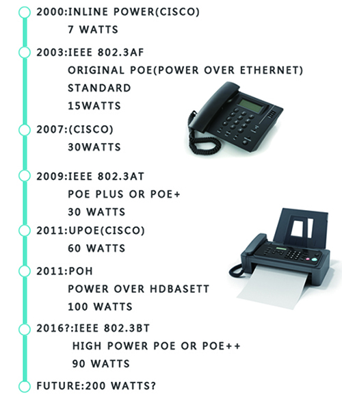 比如我們家用普通固定電話(huà),不需要額外電源,即使家里停電能撥打電話(huà),因為電話(huà)線(xiàn)不僅可以傳輸話(huà)音信號,也負責給電話(huà)機供電(智能電話(huà)由于功率加大,有時(shí)也需要額外的電源)。由此POE(以太網(wǎng)供電)技術(shù)應運而生。