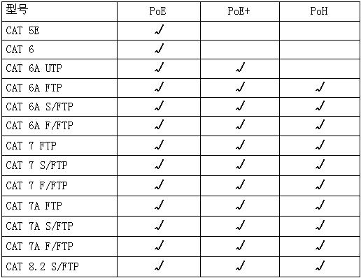 IEEE802.3 工作組在2012年末業(yè)界又推出POH-POWEROVER HDBASET. 利用現行的4-Pair 四對線(xiàn)技術(shù)(即8根線(xiàn)全部供電),雙邊供電達到60-100W功率,使用5或6類(lèi)線(xiàn)即可達到。應用在高清視頻推播供電給42"LED電視機,美國2010年新規定42"LEDTV 耗電需要低於70W,這樣的話(huà)液晶電視將來(lái)也可使用poe供電。